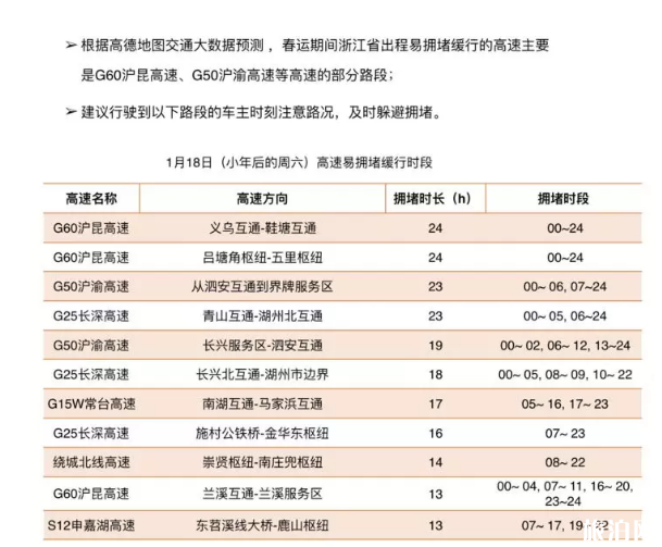 报告预计,浙江地区内相对的易堵缓行区域主要集中在如下时段和地区: