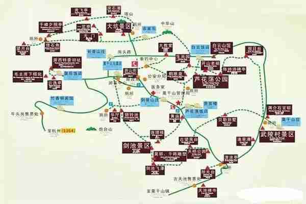 景交线路:华亭出发——剑池——大坑景区——白云山馆——蒋介石府邸——武陵村——莫干山管理局