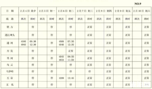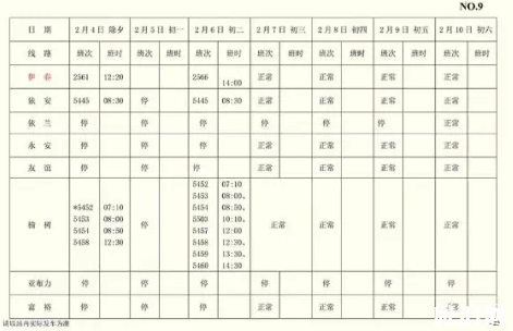 【发车时刻表(2月4日-10日)】