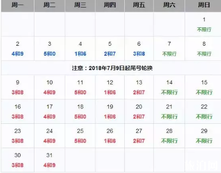 7月限行日历