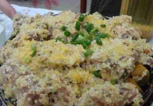 一般餐厅的小米排骨,小米和排骨是分家的,而喜洋洋家的小米排骨却把小米的香味融入到排骨中,又将肉油混入小米,相得益彰,入口耙糯而不腻,绝对是食肉族的最爱。每天中午20笼,下午20笼,卖完即止。