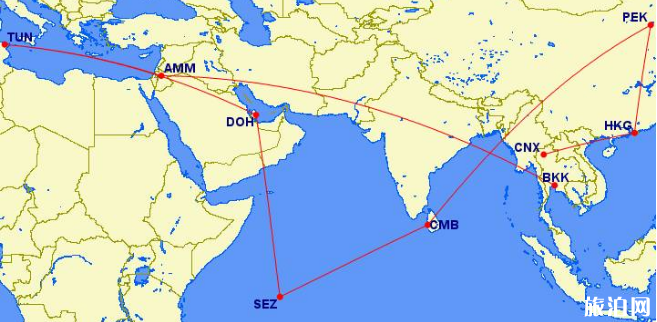 非环球航线,充分利用亚万的停留和开口规则,来一次为期两个月的印度洋沿岸及阿拉伯世界巡游。北京出发,先在香港转机去泰国,之后在清迈和曼谷之间开口,从曼谷飞约旦首都安曼去探寻失落的佩特拉古城,紧接着去刚刚对国人免签的突尼斯,发现古老迦太基与罗马帝国的文明遗迹,然后飞到纸醉金迷的多哈修整两天,再去印度洋上最美的岛屿塞舌尔度个假,旅行的尾声在斯里兰卡采茶、礼佛、观鲸,最后从科伦坡直飞回京。这个线路虽不环球,但有个最大亮点——完全不用提前办签证,说走就走,一口气玩7国!