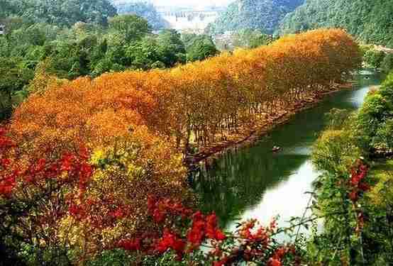 给出几张照片,完全可以看看这里的景致是怎样的呢!贵州的这片红火山林,他就在广阔的红枫湖边,清澈的湖水,和着湖边深秋的红叶。红枫湖边上有座红枫岭,岭上及湖周种有许多枫香树。这里深秋的颜色都是这枫香树所赐予的。