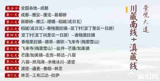 由于318国道川藏南线沿途风景、路况更为精致优良,更适合观光旅游,大多数人都会选择走318国道。考虑到旅途的风景,我们规划出“川藏线+滇藏线”的经典组合,既可以游玩稻城亚丁、乡城、梅里雪山,又不至于走回头路。