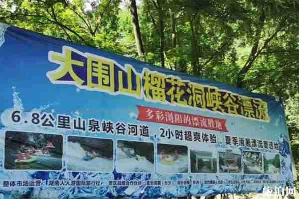 在大围山主要有四大漂流,而榴花洞峡谷漂流是其中河道最常的,有6.5公里,可以直接漂两个小时。漂流段在无人区,那里出来的水,整个水质比较好,河道环境也非常不错,夏日消暑绝佳之地。