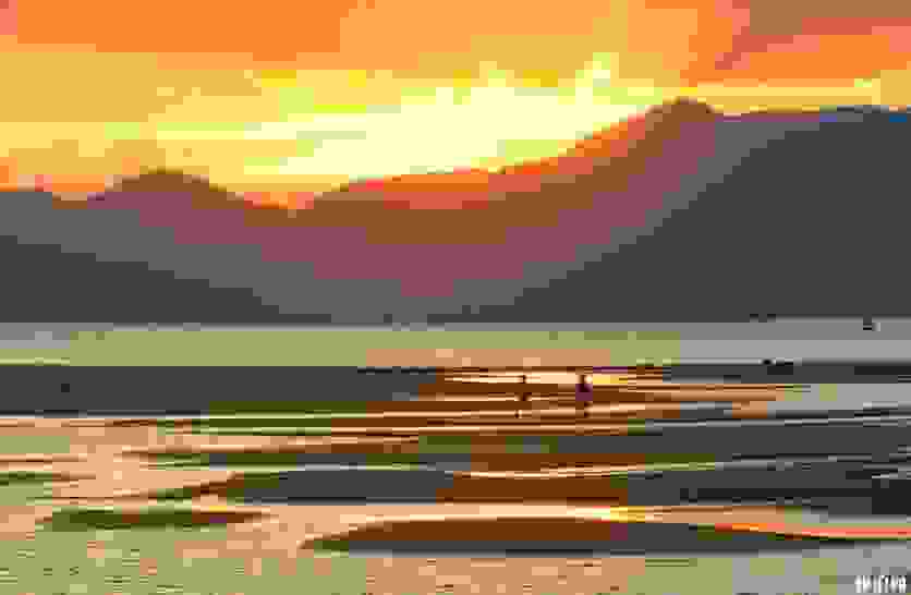 马尾岛夏季十分一般7点日落,从海岛入口走到最佳观赏位(沙滩对面的滩涂)要30分钟左右,大家在大角湾玩的时候可以把握好时间过去马尾岛看日落!