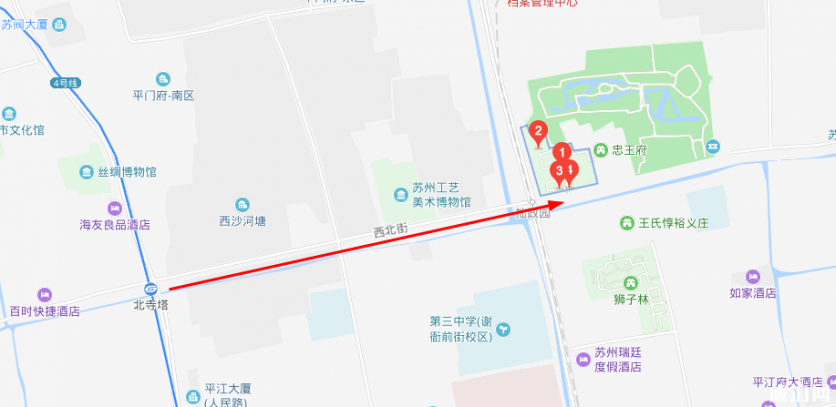 苏州的地铁目前没有直达到苏州博物馆的,最近的地铁口位于苏州地铁四号线的北寺塔站