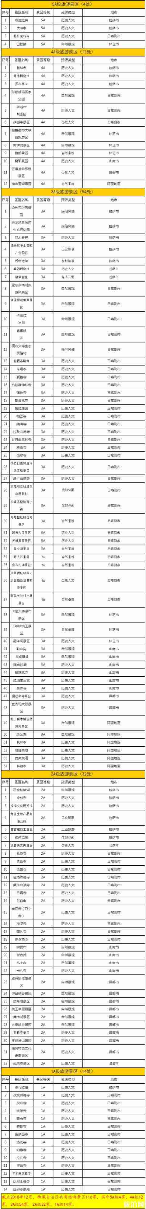 为使游客获得更便捷舒适的旅游体验,记者检索到西藏自治区A级旅游景区名录。
