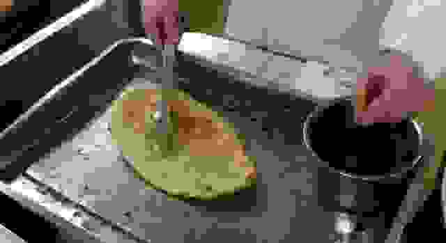 矮子锅盔几分钟一个,做的速度非常快。从炉子里夹出来后,师傅会问你吃不吃辣,吃的话就会给你刷上一道辣油,再对折装进袋子递给你,并会叮嘱你这个要趁热才好吃。