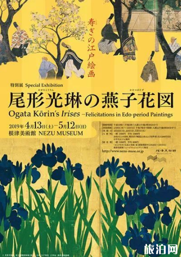这次展出通过三个章节来展现《燕子花图屏风》。第一章作品的题材为江户时代的人们对公家风俗和王朝文学的憧憬,第二章描绘了江户时代宫廷中的花草图盛起的由来,第三章表现了京都的祇園祭等各种名胜地与热闹景象。
