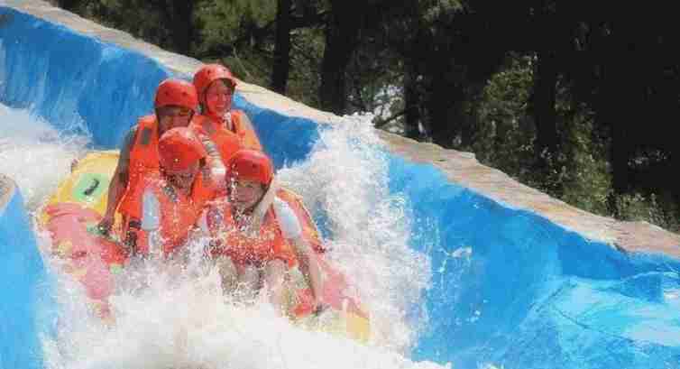 出了洞要去吃饭喽,吃完饭我们来到了有着“江苏第一漂”美称的漂流入口处,租了雨裤和雨鞋就上了皮滑艇。不一会就到了一处激流,往下冲去,皮滑艇一上一下,左摇右摆,把我屁股都快颠疼了。上了岸,我才发现我的鞋子,袜子和裤子全湿了,晾了十分钟还没干。