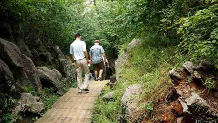 狼巷迷谷分为古刹礼佛和迷谷探奇两大主题。其中迷谷探奇特别好玩,是天然的喀斯特地貌形成的“迷宫”,迷宫中的道路非常狭窄,最窄处只能弯腰躬身侧着通过,道路两边的岩壁都有一层一层的纹理,粗短的树木顽强地生长在岩石上,地貌奇特。