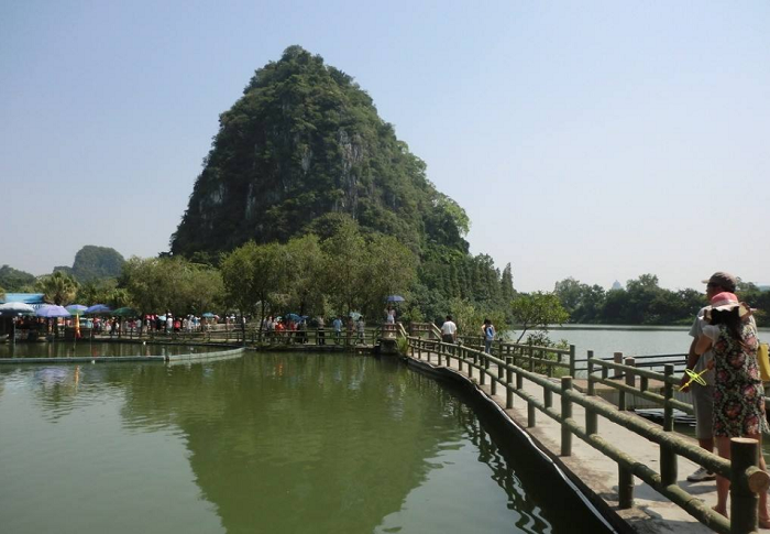 七星岩位于广东肇庆市区北约2公里处,被誉为“人间仙境”、“岭南第一奇观”。七星岩景区由五湖、六岗、七岩、八洞组成。湖中有山,山中有洞,洞中有河,景在城中不见城,美如人间仙景。七星岩以喀斯特溶岩地貌的岩峰、湖泊景观为主要特色,有七座排列如北斗七星的石灰岩岩峰巧布在湖面上,湖堤把湖面分割成五大湖,风光旖旎,所以取名为七星岩。