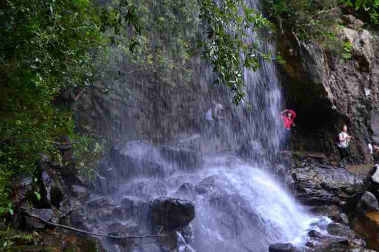 水帘洞瀑布,飞瀑奔泻,悬流百尺,散缕似珠,山城沟谷中泉眼累累。当地人称为“海眼”的悬泉,是众泉眼中最大的一个。泉水翻滚,激起层层白色浪花,响声震耳。平地涌出的泉水,从“海眼”旁边的峭壁上直泻而下,汇入桃河,形成水帘洞瀑布。壁面布满常青苔藓,一串串银花纷扬其外,水雾弥漫,蔚为奇观。