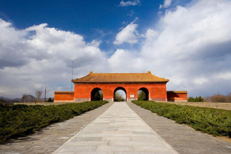 天寿山麓的小盆地之中,群山环抱,小河蜿蜒,风水宝地中坐落着体系完整、规模宏大的明代陵寝建筑群;永乐皇帝的长陵规制最为宏阔,建筑用料讲究,颇具皇家气势。