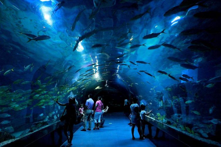 天津极地海洋世界是目前国内最大的单体极地海洋馆,建筑面积47000平方米,主场馆高43米,共四层,外形酷似畅游中的鲸鱼,最高点“鱼鳍”高度约为67米,馆内建有目前全国体量最大的海底隧道,长35米,程“L”形路线,拱形观赏面。游客可以在馆内与各种“海洋精灵”零距离接触,与海豚握手、亲吻,亲手喂养白鲸等。