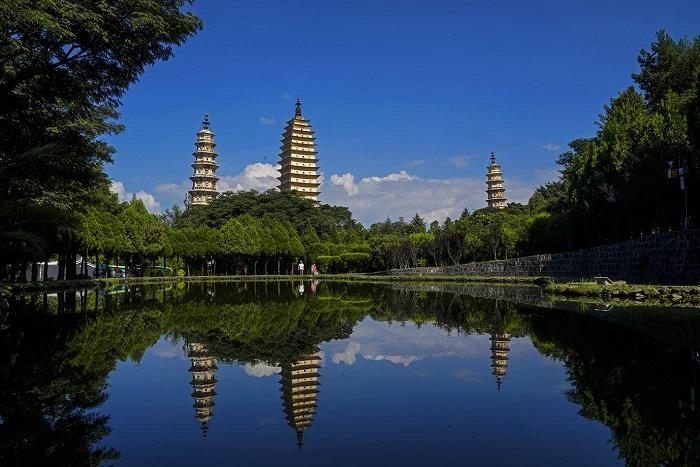 崇圣寺是大理国时期的皇家寺院,以寺中三塔闻名于世,可以说它就是大理历史文化的一个缩影,而且周围尽是蓝天白云青山绿水,风景更是宛如仙境一般。
