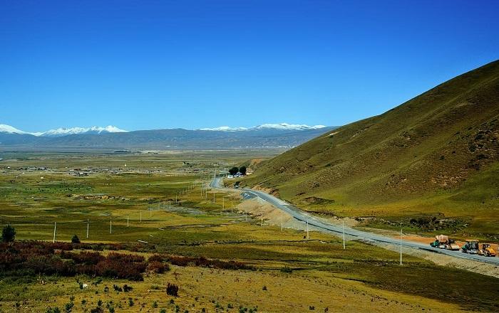 是一片广阔的草原牧区,山下的姐妹湖终年冰封不化,传说湖中有怪兽出没。继续向西,经义敦村便达巴塘。