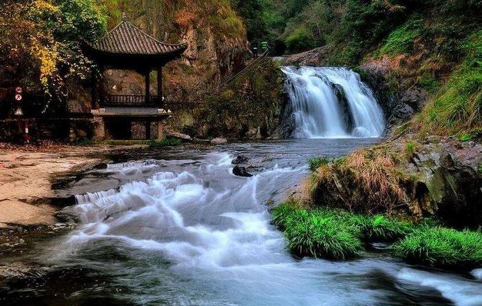 五洩风景区位于诸暨市西20公里,由外至内分为五泄湖景区、桃源景区、东源、西源四部分。所谓“泄”就是瀑布,景区内有一条五折的飞瀑,非常壮观,是景区最大的看点。
