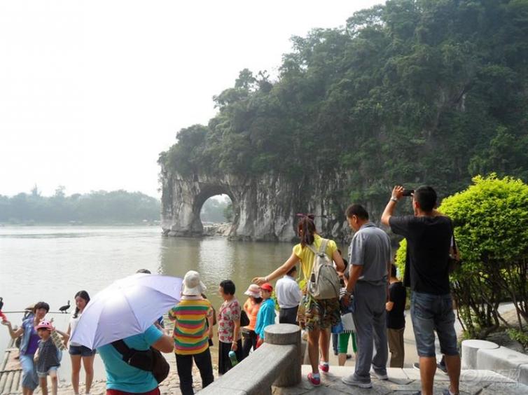 象山景区位于桂林市中心,景区内的象鼻山山形酷似一头伸着鼻子汲饮漓水的巨象,是桂林出名的标志性景观之一。虽然景区不大,而且门票较贵,但许多游客仍会冲着象鼻山的名气而来,只为拍摄这它的全景以作留念。象鼻山在桂林群景之中的地位可见一斑。除了象鼻山本身,景区还有水月洞、爱情岛、普贤塔、三花酒窖等景点。水月洞位于象鼻山的象鼻和象身之间,里面留存摩崖石刻50余件,唐代诗人韩愈的名句:“江作青罗带,山如碧玉簪”镌刻洞中。沿着水月洞登级而上石级,山腰有个20多米长的穿洞,酷似大象的眼睛,故名曰“象眼岩”。