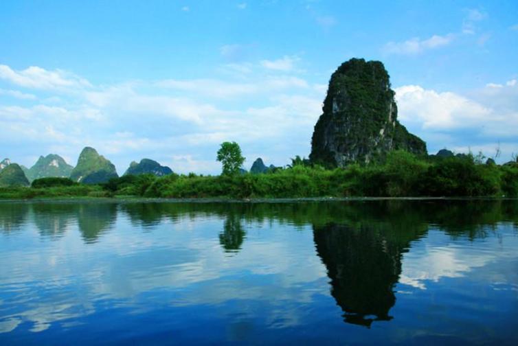 遇龙河是漓江在阳朔境内的一条支流,河水清澈如镜,随手就能拍出山水画般的照片。与漓江风光相比,遇龙河的风景更温婉,有“小漓江”之称。遇龙河的竹筏漂流很有名,可以坐筏细细品味沿河秀美的山水田园风光。游玩遇龙河有三种方式:步行、骑自行车、遇龙河漂流(全程15公里左右)。乘竹筏泛舟在遇龙河上,两岸山水如画,非常享受。遇龙河共有5个码头,从上游开始依次是金龙桥、旧县、夏棠寨、朝阳、工农桥。可以从金龙桥漂全程至工农桥,也可分段漂流。目前开通的主要航段是:金龙桥-旧县、夏棠寨-旧县、金龙桥-工农桥、朝阳-工农桥,漂流时间因遇龙河水量大小而异。