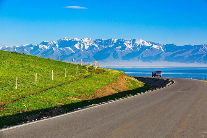 赛里木湖背靠雪山,湖边是广阔的草原,湖水清澈蔚蓝,因风景绝美一直是新疆最著名的几大景点之一。每到六七月份,湖边草原上开遍了各色的野花,更是不可错过的盛景。
