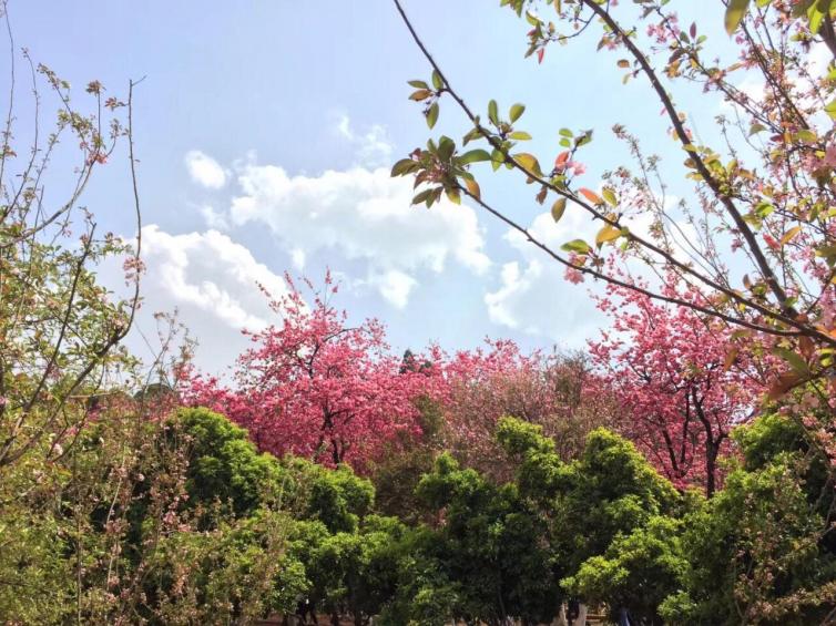 除了去圆通山看樱花,还可以去西华园看垂丝海棠,穿越花海隧道,一天轻松来回,赴一场与春天的约会。