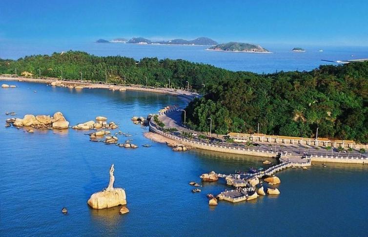 定海湾自然风光与人文景观兼备,曾被外地游客称为“北方的北戴河”、“南方的夏威夷”,湾内山峦逶迤,海岸曲折,岩壁沙滩,明屿暗礁,夹以绿树红花,桅樯跃影,浪飞鸥翔,构成旖旎的滨海旅游资源。