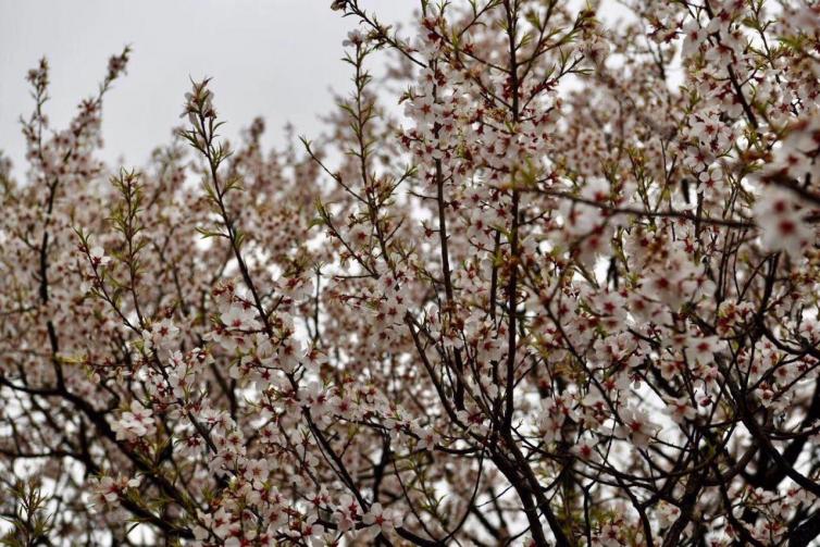 那开遍每个角落的樱桃花,挂在枝头白如云朵,随风飘散碎似雪花。漫步在树下好似落入一片花海,山脚下不时有青松点缀、牛羊穿梭,远观如临世外桃源。赏罢美景,还可在这里享受真正的山村美味。农户自种蔬菜、自制腊肉、香肠、菜豆腐、竹荪炖土鸡、农家土猪肉等,让人既饱眼福又大饱口福,别提有多惬意了。