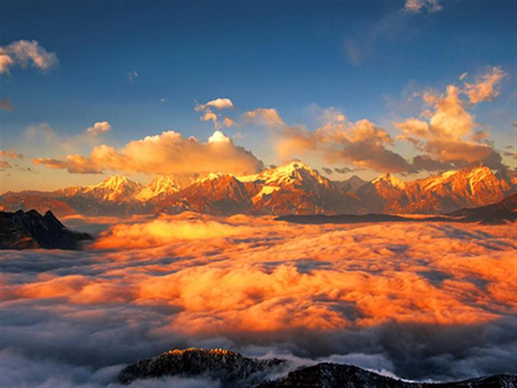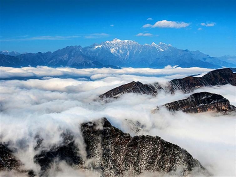 牛背山因山顶悬崖有巨石突出酷似牛头,山脊细长貌似牛背而得名,被称为“中国最大观景台”。牛背山的云海,浓密而均匀,壮阔而平缓,随处可见的瀑布云犹如阿凡达中“哈利路雅山”,让人感觉踏步于空中。站在山顶不仅能观赏到蜀山之王的全貌,峨眉山、四姑娘山和二郎山等天府之国名山峻岭尽收眼底,运气好的话还能看到日照金山。牛背山上的住宿还算方便,有很多藏族人搭建的大帐篷可以住宿,山上条件相对恶劣。出发去牛背山前,一定要提前咨询客栈是否能开车上山,如果遇上山顶积雪路面结冰问题,车在“云海人家”就会停止,需徒步2-3小时上山。