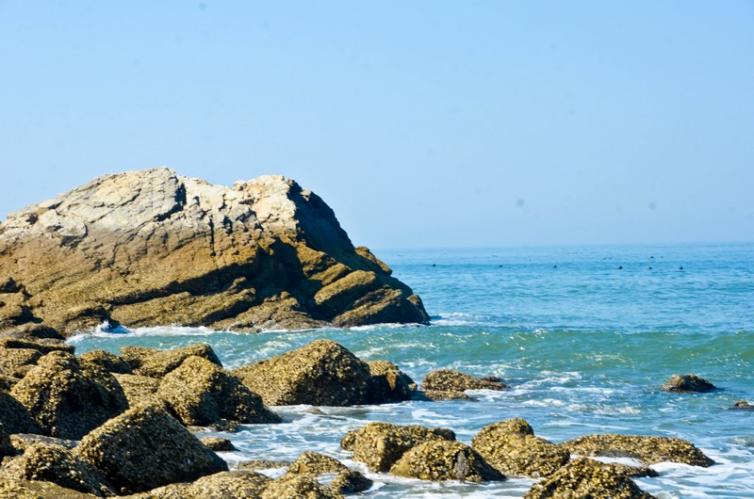 不远处有一片滩涂,当地人叫做:西南口。整片的鹅卵石滩涂,布满圆润的鹅卵石以及硕大的礁石。礁石被海水不知多少年的冲刷依然光润,犹如巨大的汉白玉或者玉石一般。在这里孩子捡石子,捉小小的发财蟹,玩的不亦乐乎。