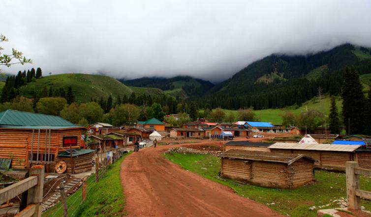 这个地处新疆的历史文化明村,保存了很多完整的建筑群,大部分是木质结构,历史文化意义深远。因为当地夏季潮湿多雨,为了适应当地的气候环境,当地人选择木质结构的房屋记住生活,深处大山的原始村落,因为天山的原因,逐渐走入游客的视野,传统的哈萨克游牧民过着放牧的原始生活,来到这里,蓝天白云到处都是,看不到任何一点商业化气息,大自然的美景,让人如痴如醉!杉木林形成墨绿色的屏障,五颜六色的花海,让小村的原始风貌更加和谐。