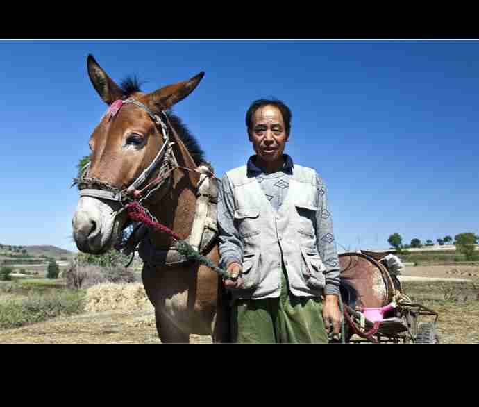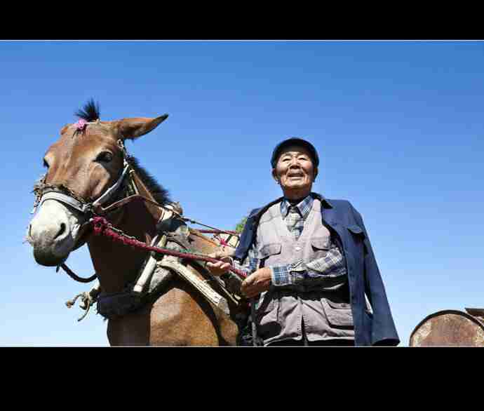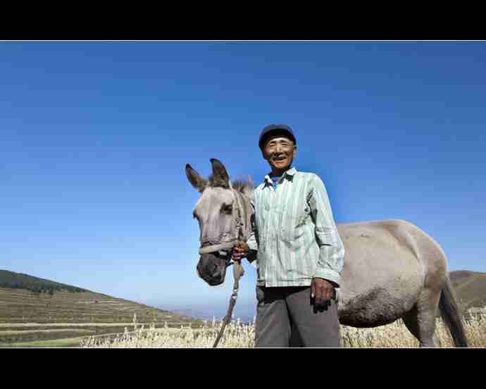 周日早上乌云密布,没起来拍日出。上午7点,云开雾散,马上收拾好东西出发,向着昨天选定好的天路、风电林区进发。天空中的云,将梯田点缀成了斑驳,一块一簇,流动着、奔跑着前行,而我手中的相机,也不停的咔咔响着。这位带着小前进帽的大爷,是第一个走进我镜头的老人,手中牵得是一匹“宝骡”,对草料不挑还特别能干活。当地人对牲口有着一种特别的喜爱,谈起骡子的时候就像说到自己家人一样的开心和自豪。可想而知在这样贫瘠的土地上,人们农耕主要还是依赖牲口,生活条件是何等水平?
