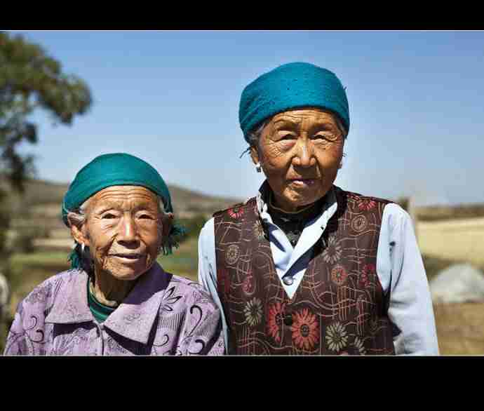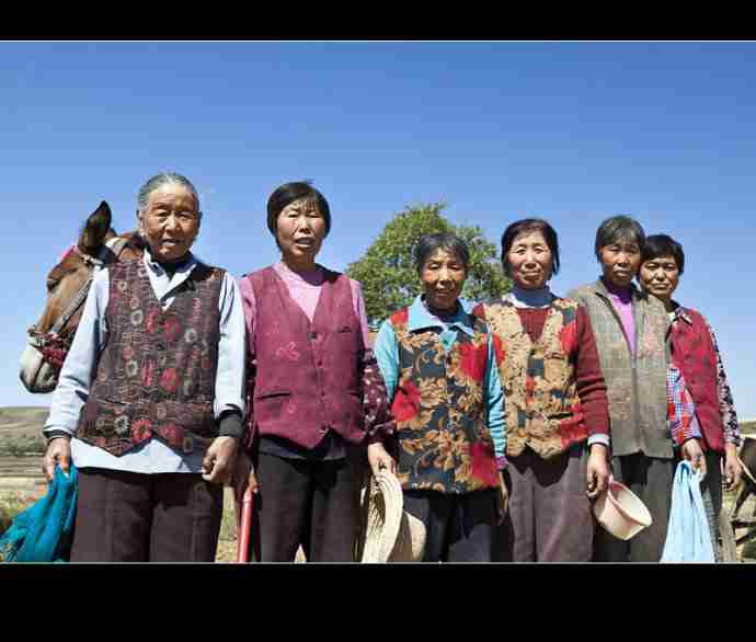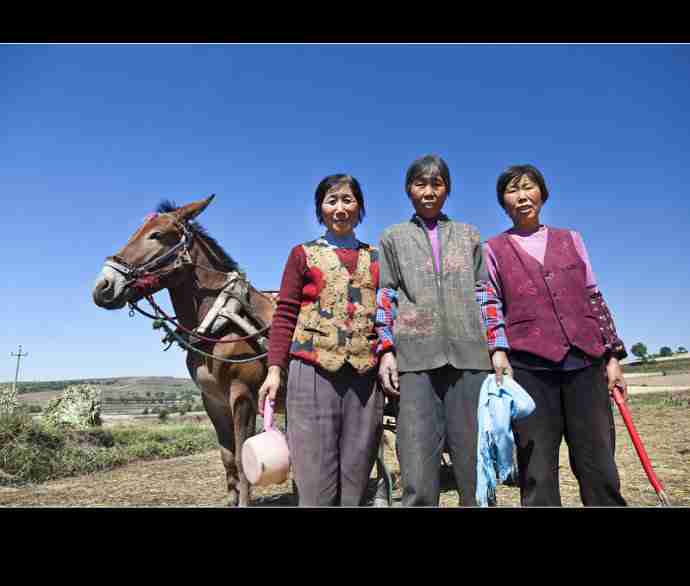 车子路过一处农田时,发现了两位老大娘,带着蓝色的头巾,正满脸笑意的看着我。左边的这位79岁,右边的那位83岁,都是高龄老人了。老姐俩步履已经有些蹒跚,自己的老伴也都已经过世,孩子们外出打工,两个人互相帮助,相依为命了。老大娘一看我拍的片子不错,又听我答应她们寄照片,便忙把周围的邻居都叫出来一起拍照。于是便有了这位颇有村长风范的魏大爷,还有众多走进镜头的大娘们。