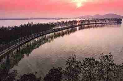 国内首条城区内5A级旅游景区绿道。东湖绿道全长101.98公里,宽6米,串联起东湖磨山、听涛、落雁、渔光、喻家湖五大景区的东湖绿道,目前由湖中道、湖山道、磨山道、郊野道、听涛道、森林道、白马道主题绿道组成,骑车散步踏青的好去处。