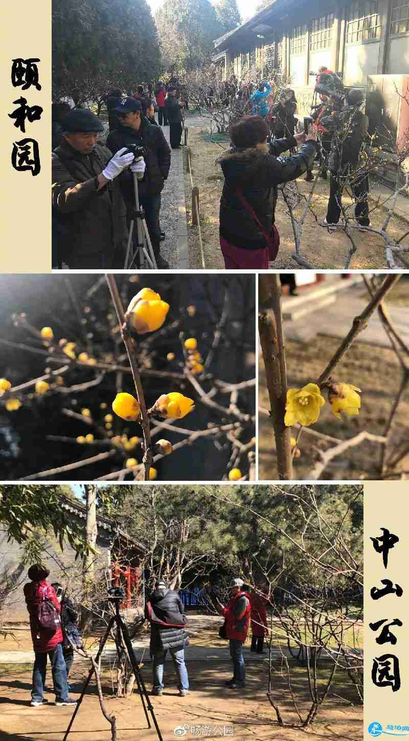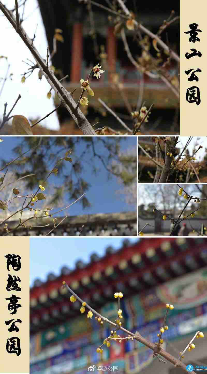 北京公园观看腊梅花的地点:颐和园乐农轩门前的腊梅成片盛开,一丛丛腊梅的枝头缀满了鹅黄色的小花蕾, 给冰冷的冬日带来了早春第一抹春意,也拉开了颐和园春季赏花的精彩序幕。