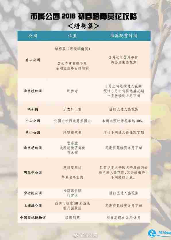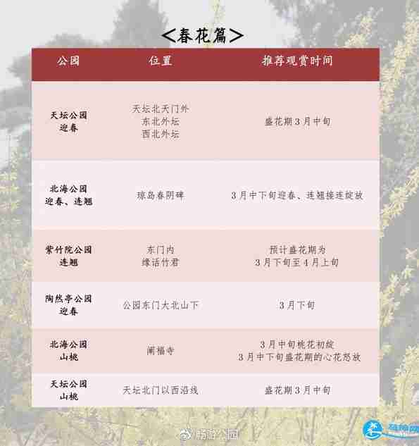 本周末起,气温回暖,正是赏花、踏青的好时节,下面由小编为您盘点市属11家公园及中国园林博物馆第一波春花观赏攻略。