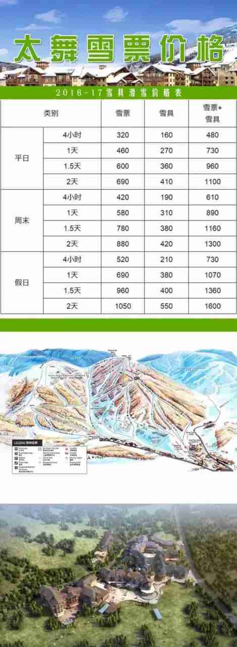 太舞滑雪场由瑞意投资集团投资兴建,规划范围80平方公里,计划投资200亿元人民币,着力打造以滑雪为核心经营活动,集时尚运动、精品文化和慢拍休闲与一体的世界级四季度假胜地。太舞滑雪场制高点海拔2169米,最大落差512米。规划开发雪道180条,总长138公里,滑雪面积400公顷;人工造雪覆盖面积400公顷。索道45条,总运力70000人次/小时。目前,已建成雪道9条,长度8.1公里,滑雪面积20公顷。全部滑雪道配备了人工造雪系统。索道4条,运力3000人次/小时。滑雪场一期的设施设备配套完善,已自成体系。2014年,计划新建雪道28条,长度20公里。索道4条,运力7000人次/小时。太舞滑雪场可承担单板滑雪和自由式滑雪的障碍追逐项目4个小项的比赛。