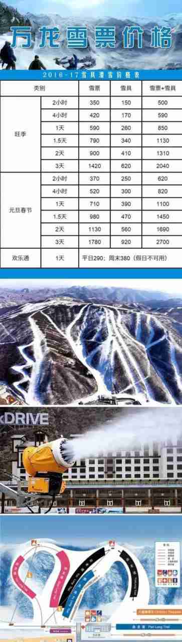 万龙滑雪场位于河北省张家口市崇礼县红花梁,占地面积30余平方公里,最高处海拔2110.3 米,垂直落差550 米。距北京市249 公里,距张家口市50公里。万龙滑雪场开发共建成初、中、高级滑雪道22 条,其中初级道2条,中级道4条,高级道16条,雪道总面积90多万平方米,树林野雪总面积90余万平方米。