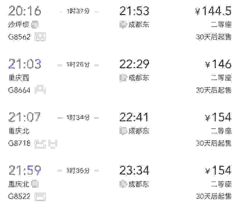 重庆到成都的高铁动车基本每十到二十分钟都会有车次发车,下面就把成都到重庆的高铁动车时刻表整理给大家,方便朋友们安排自己的行程。