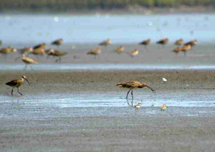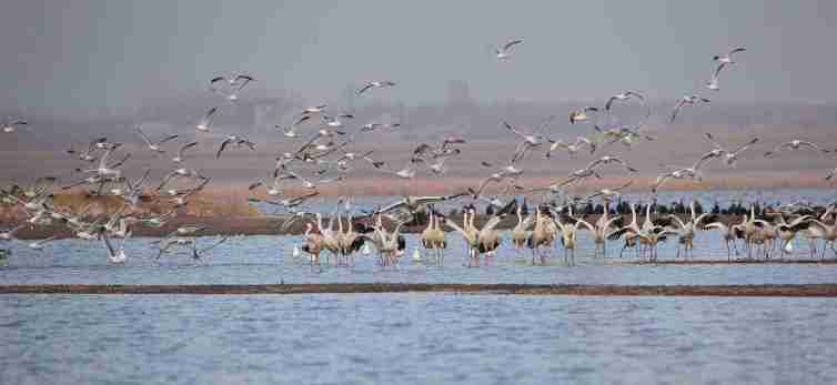 能看到啥:鸻鹬类、黑嘴鸥、渔鸥、翻石鹬、黑尾鸥、大天鹅等