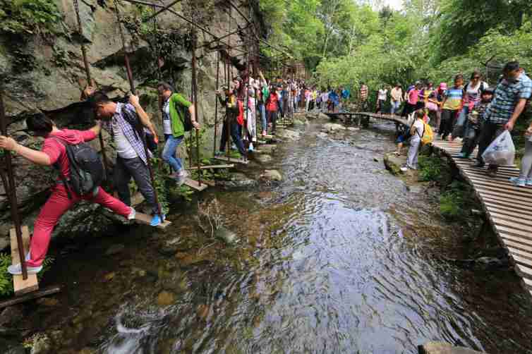 漫山都是浓浓的绿色和九寨沟一样,葱郁的森林围绕,在清澈的湖泊周围,站立其中,仿佛置身于深邃雄旷、古朴、自然、美丽的山水画中。这里大树都长在石头上,春季绿满群山,繁花绽放;夏季千山苍翠,百水争秀;秋季层林尽染,姹紫嫣红;冬季银装素裹,雪玉冰清。站在山巅之上,仿佛置身于云海之中,极目远眺,绵绵群山就在脚下,山林里绿茸茸的小草个个挺立,整整齐齐。阳光透过树木密集的枝叶,在山道上洒下斑驳的树影。