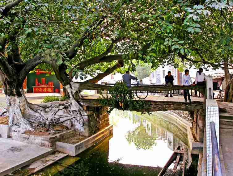 【推荐理由】容里村有条名为“鹏涌”的水道,树生桥就是架于鹏涌之上的小桥,300多年的历史了;据说很久以前这里架有一木桥,两岸桥头分别植有数株榕树;由于年久失修,桥身废烂了,乡民们于是以通心茅竹引来多条桥畔榕树之气根至对岸;后来,粗壮的气根竟代替了木梁,乡民们便铺上木板,于是一座宽两米多、长六米的活桥便形成了;大树下,是乡民们纳凉打牌的好场所,小孩子最喜欢沿树干爬上爬下,打打闹闹;原始的乡野生活其实就这么简单。