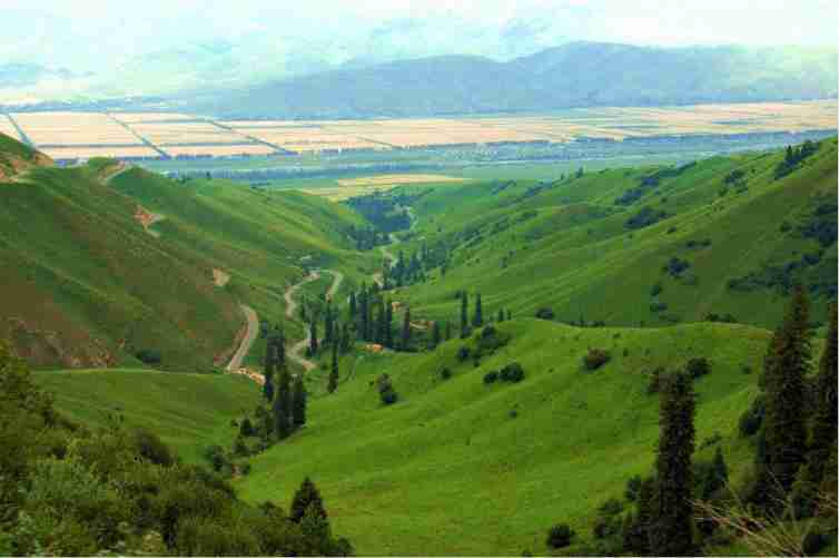 之后沿风景如画的果子沟,来果子沟以前,你也许不会相信有这样一个地方:谷底山花烂漫,蜂蝶飞舞,山峦松塔如墨,林涛千层;远山雪峰皑皑,冰清玉洁,一年四季的风光竟可以完美融合在一起。