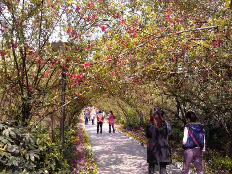 赏海棠花最佳的地方——海棠长廊,就在从东大门进去,然后往右走不远就到了。长廊顾名思义就是铺天盖地的海棠花构成了一条花的长廊,来这儿赏海棠花是绝对错不到的。