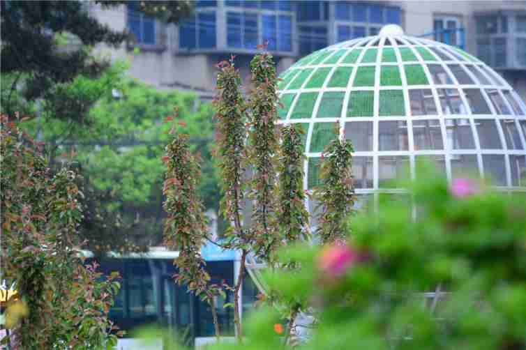 ①南部植物观赏区。园内共有花卉组型30个,栽植蓿根,露地花卉40余种。四周花坛设置了草坪灯、自动喷灌装置,外园采用蘑菇石作为园椅,点缀了花钵、花架。有鲜明的花卉色彩和绰约的树木风姿。