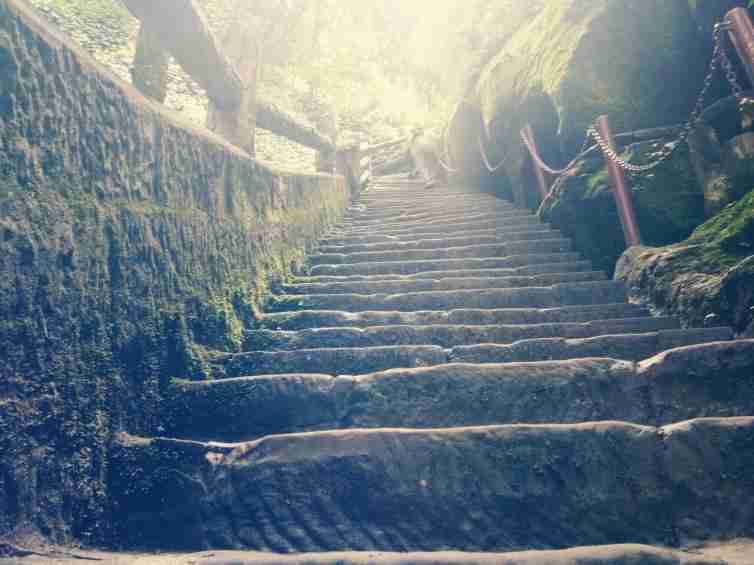 3、上到山顶一定要进净音寺,寺内有一平台,三面绝壁,地势险峻,为极目远眺的绝佳之处,亦是鸡公嘴“非去不可” 的最大理由,不能错过。