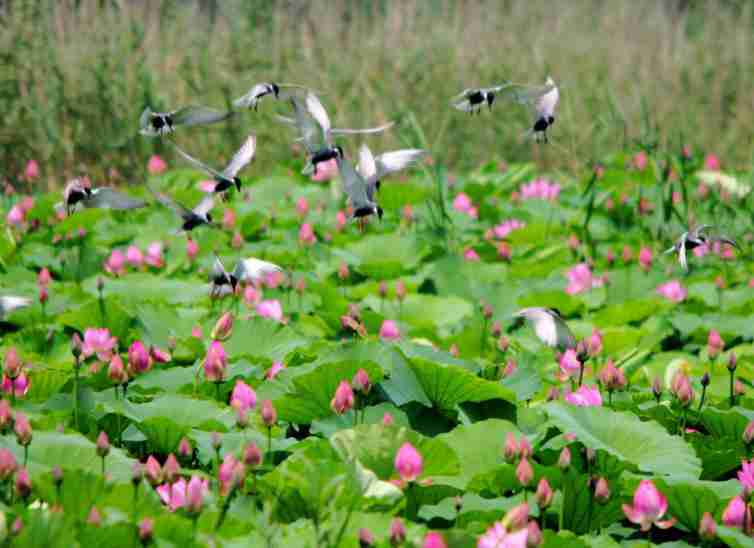 游览水上植物园、飞瀑迎宾等景点;后可自费乘游船欣赏微山湖上观光:可观赏微山湖的波澜壮阔,12万亩野生荷田浩浩荡荡,十里芦荡金黄与碧绿高低错落交织其间,灰鹤、白鹭等国家保护的稀有鸟类自由翱翔。呈现一派荷叶田田、芦苇丛丛、鸥鹭翩翩的迷人景象。