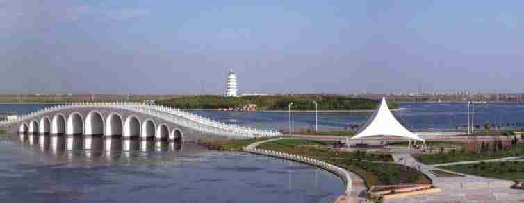 民丰湖位于东营市垦利县城东部,主要有湖心岛、新月广场、三元广场、九曲长桥、亲水平台、景观桥等景点。