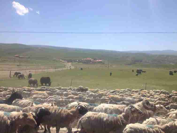 在藏区开车,经常会碰见牛羊横穿马路的情况,注意避让牛羊是司机的“天职”,如果不小心撞上了牛羊,后果可就严重了。